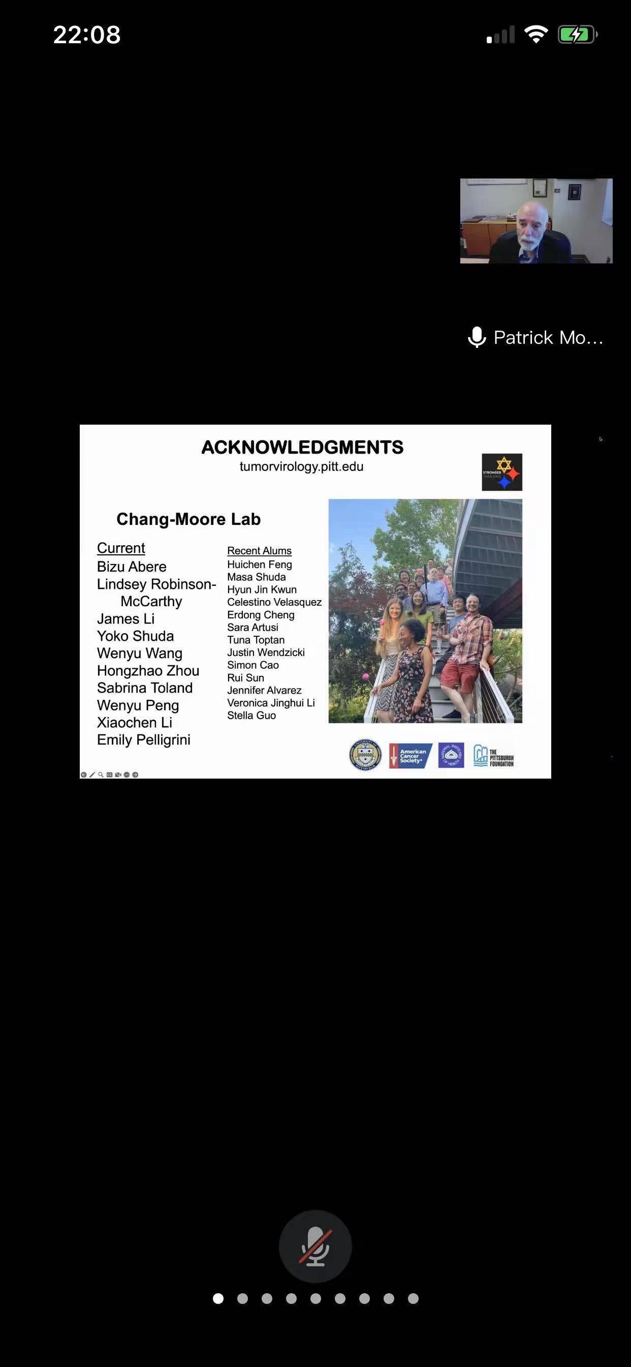 在湖南师范大学“精勤讲堂——国际名师系列讲座”项目的支持下,2023年4月20日晚,我院邀请美国科学院院士、美国匹兹堡大学微生物与分子遗传学系杰出教授Patrick S. Moore,通过腾讯会议为我校师生带来了题为“Why do some viruses cause cancer while other viruses kill it ?”的学术报告,分享了致瘤病毒的发现、结构鉴定、地域传播以及致瘤的机制。Dr.Moore以KSHV以及MCV病毒为例,以病毒的生命周期转换为切入点,详细阐述了病毒通过建立潜伏稳态,逃脱免疫监控,从而达到病毒致癌的目的。Dr.Moore提出是否可以通过打破病毒的潜伏稳态从而达到治疗该类癌症的设想。该设想引起参会人员广泛讨论。